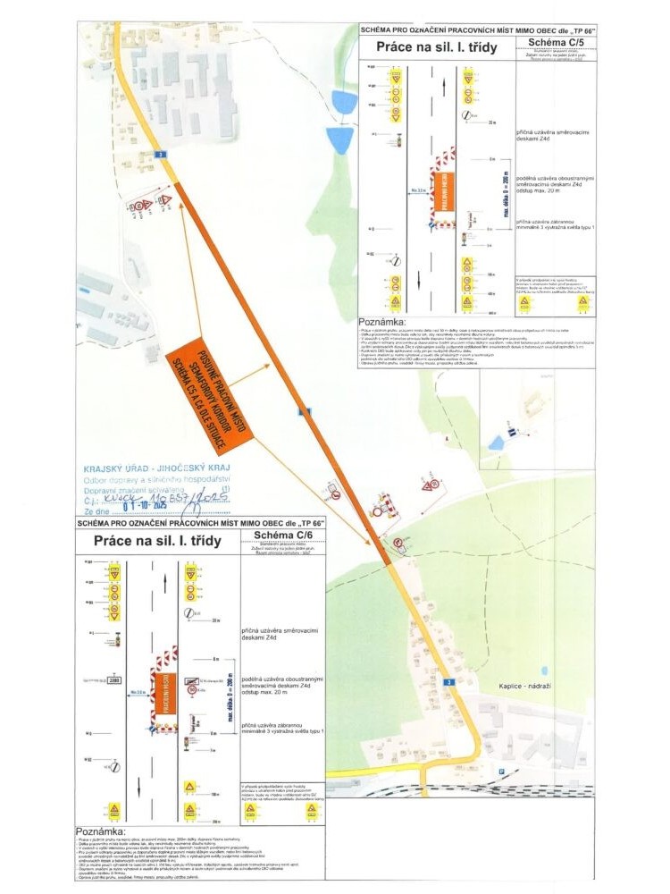 Na hlavním tahu silnice I/3 mezi Netřebicemi a Kaplicí-nádraží začínají práce na opravě povrchu vozovky v úseku dlouhém přibližně 1,4 kilometru.