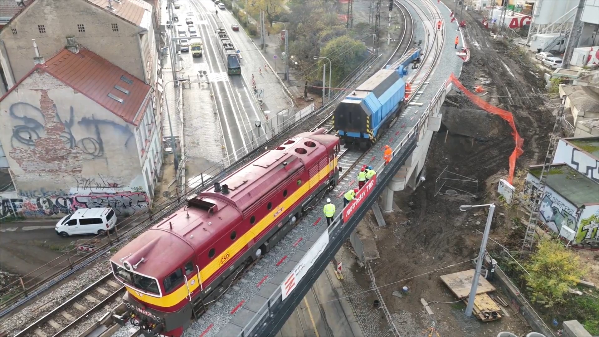 V Nádražní ulici na Smíchově včera, ve čtvrtek 13. listopadu 2025, proběhla statická zatěžovací zkouška nové spojovací konstrukce.