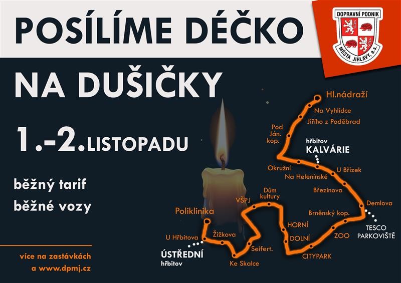Linka D - bude mimořádně v provozu o víkendu 1. a 2. listopadu 2025 jako tzv. „dušičková linka“ k dopravě lidí ke hřbitovům. Na lince bude platit běžný tarif MHD.
