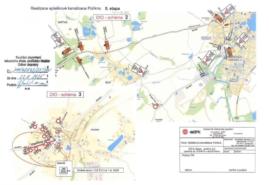 Od 31. srpna 2025 od 18:00 do 15. září 2025 do 18:00 bude prodloužena 6. etapa uzavírky silnice III/14814 od křižovatky se silnicí III/14811 po konec obce (čp. 63) a místní komunikace č. 305c mezi čp. 47 a čp. 17 v obci Políkno.