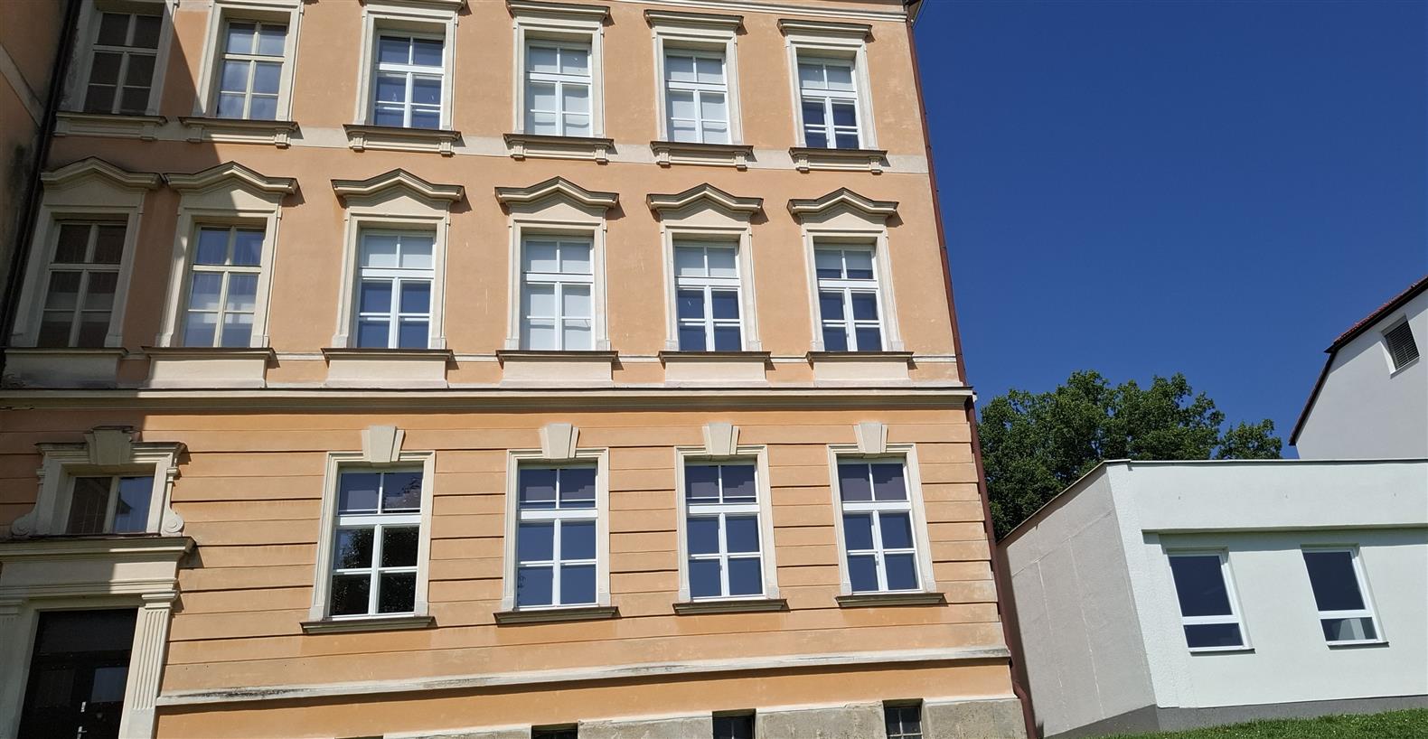 Nově instalovaná okna splňují moderní normy pro tepelnou i zvukovou izolaci a zároveň svým vzhledem citlivě respektují historický charakter budovy.