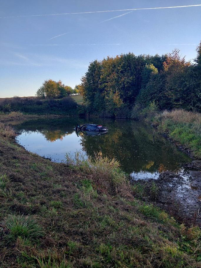 Šestatřicetiletý řidič jedoucí s osobním vozidlem Porsche při průjezdu zatáčkou nezvládl řízení, vyjel mimo komunikaci a následně sjel do rybníka.