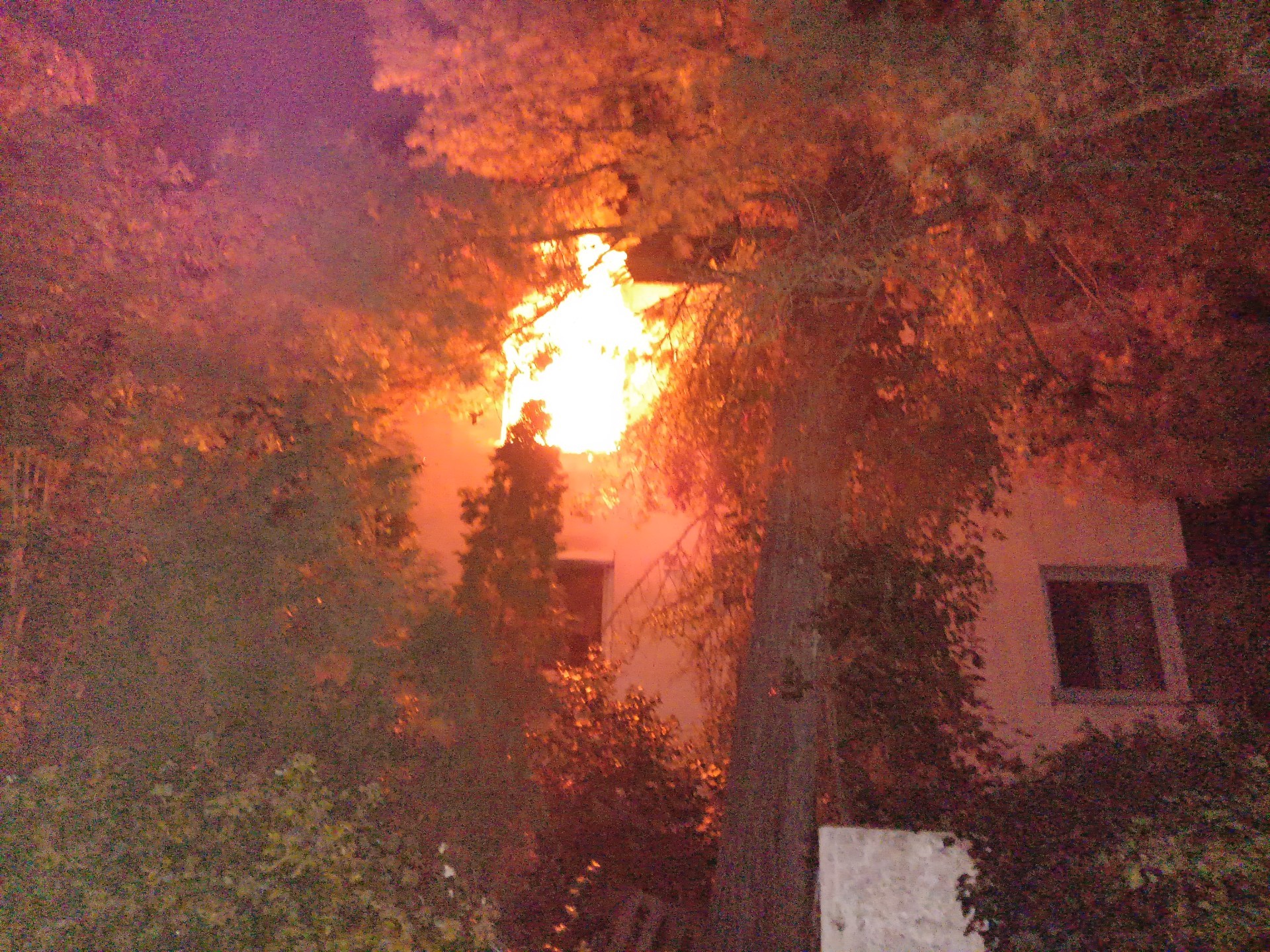 Zatím byl potvrzen požár tří místností v plném rozsahu, nasazeny 2 C proudy vně i vnitřkem budovy.