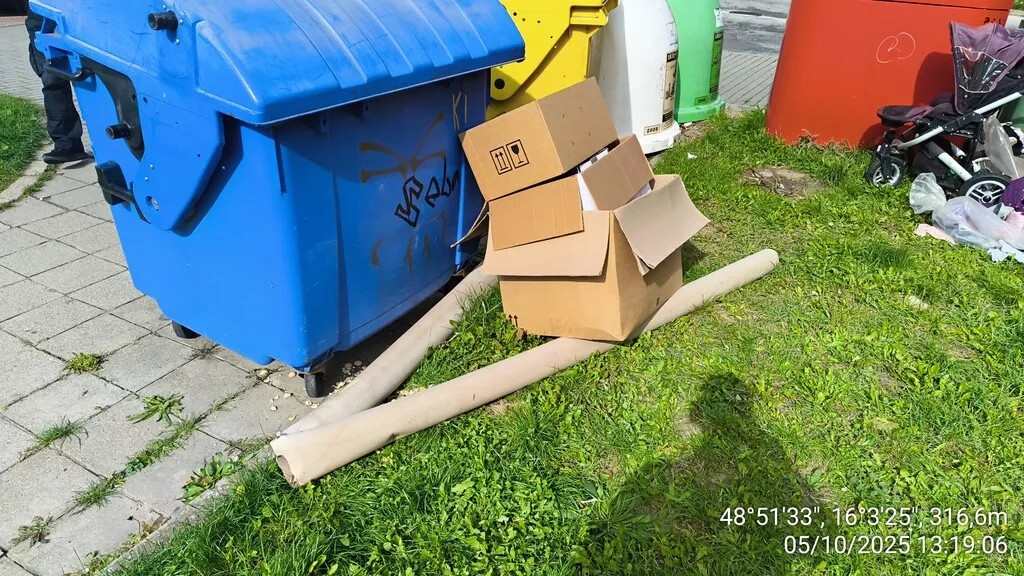 Městská policie Znojmo připomíná, že nám záleží na vzhledu města. Odkládání odpadu mimo kontejnery znečišťuje veřejný prostor a kazí dojem z prostředí, ve kterém všichni žijeme. Pokud podobné chování uvidíte, nahlaste ho městské policii – pomáháte tím udržovat naše město čisté a upravené.