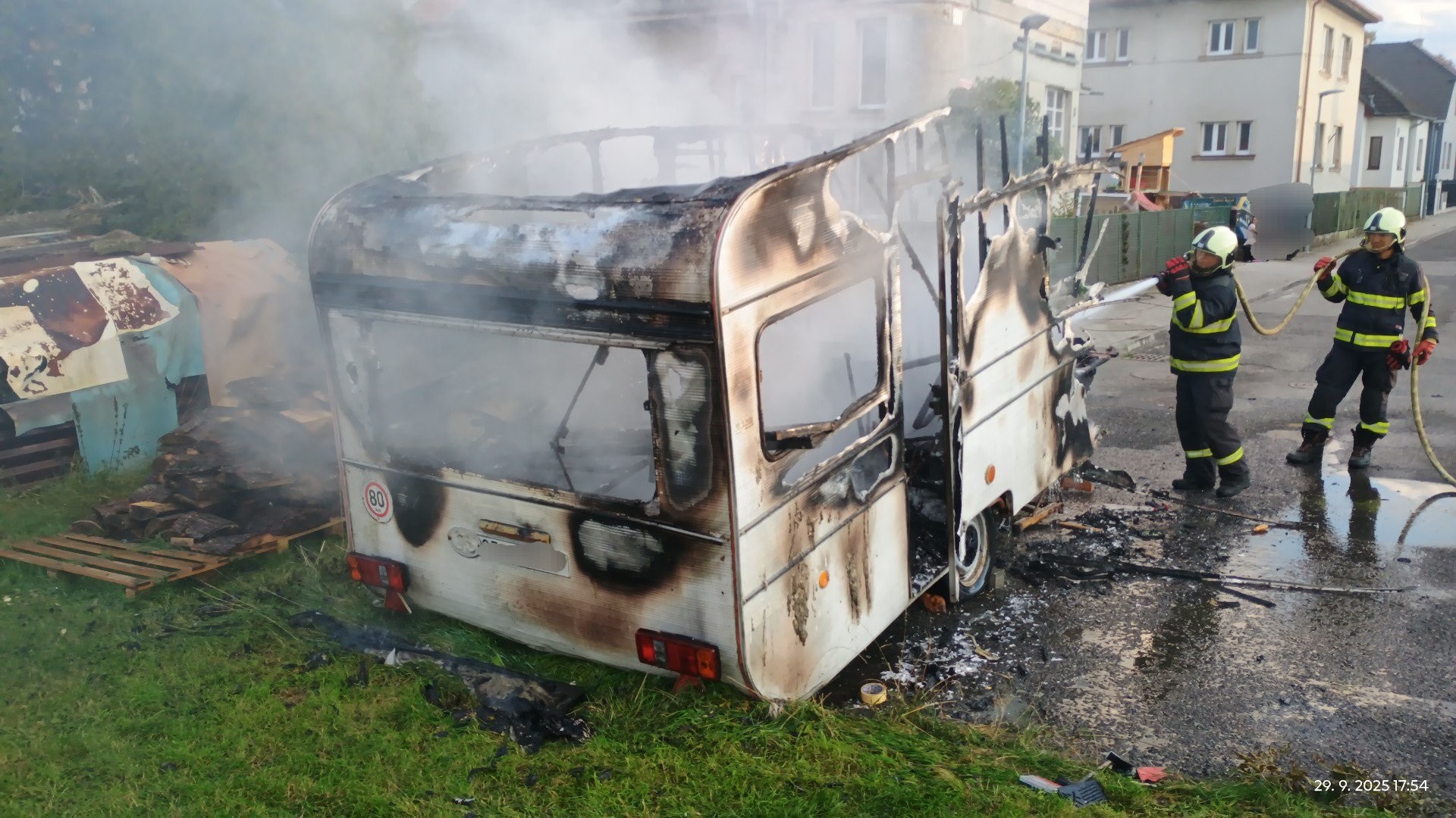Požár karavanu v plném rozsahu ve Vodňanech zlikvidovala profesionální jednotka Vodňany společně s dobrovolnou jednotkou Vodňany-Město.