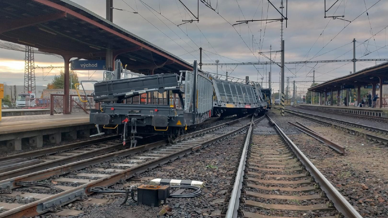 Dnes, ve středu 15. října 2025 v 1:23 hodin v noci ve stanici Kolín vykolejily 2 vozy nákladního vlaku.