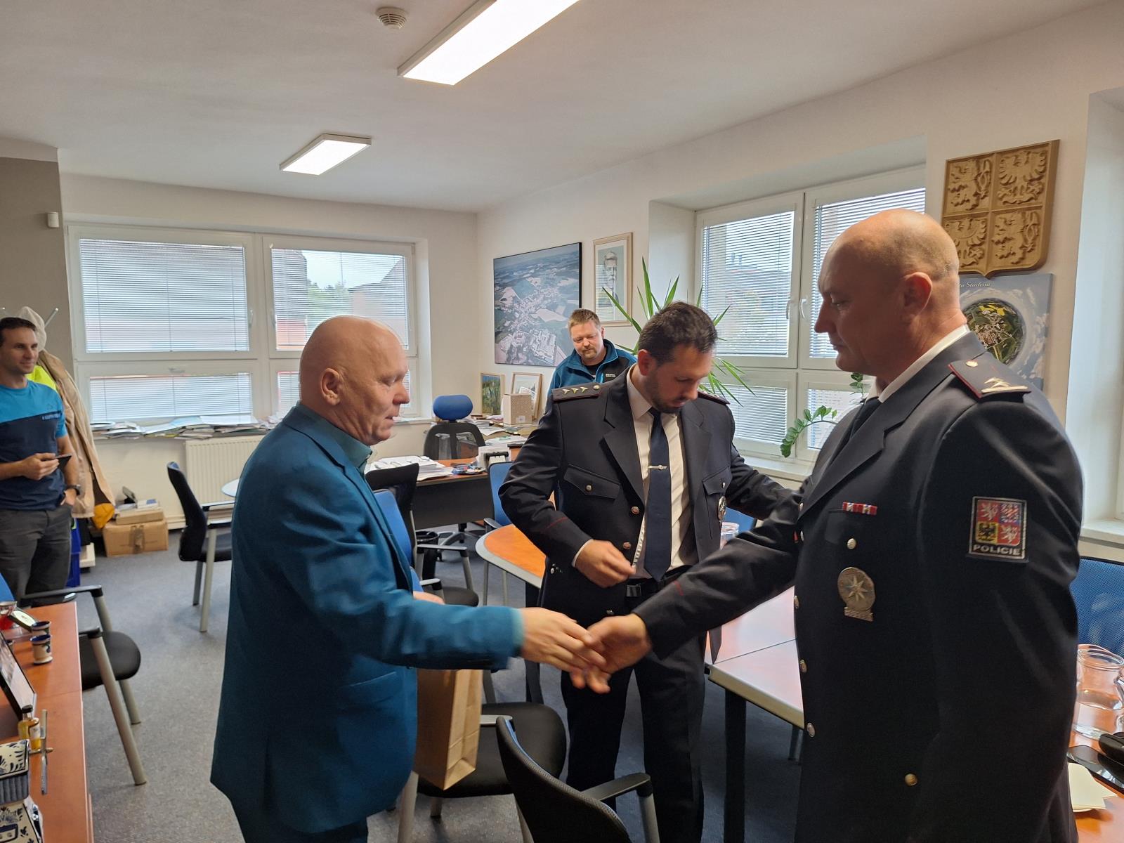 Policisté, kteří zachránili lidský život, přijali poděkování starosty. Starosta vyjádřil vděčnost policistům i občanovi.
