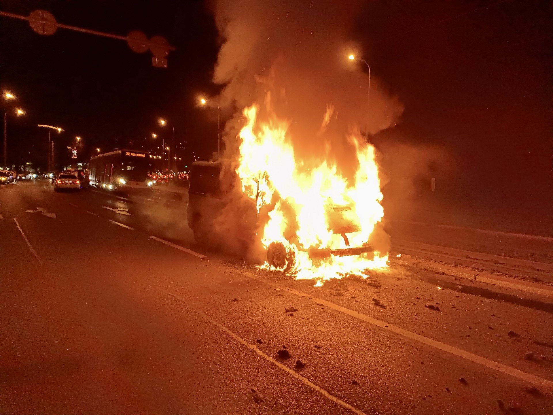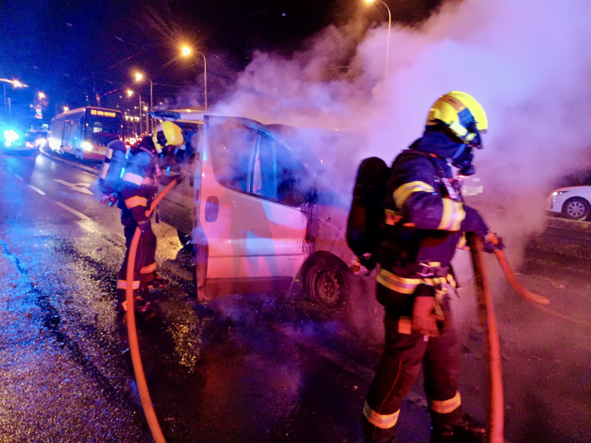 V ulici Švehlova hasiči zasahovali u požáru dodávky. Požár byl uhašen jedním proudem.