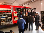 Druhou část exkurze strávili pánové v hasičských garážích obklopeni výjezdovou technikou.
