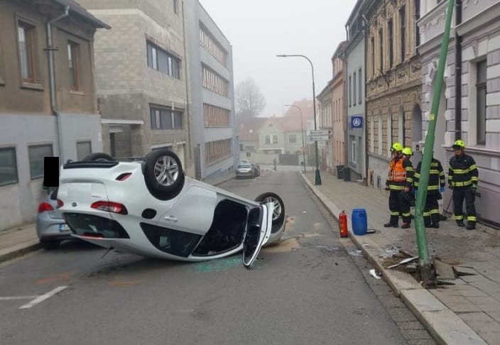 Řidič jedoucí s osobním vozidlem nezvládl řízení a vozidlo skončilo převrácené na střeše.