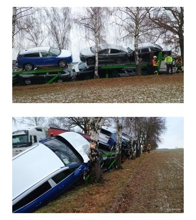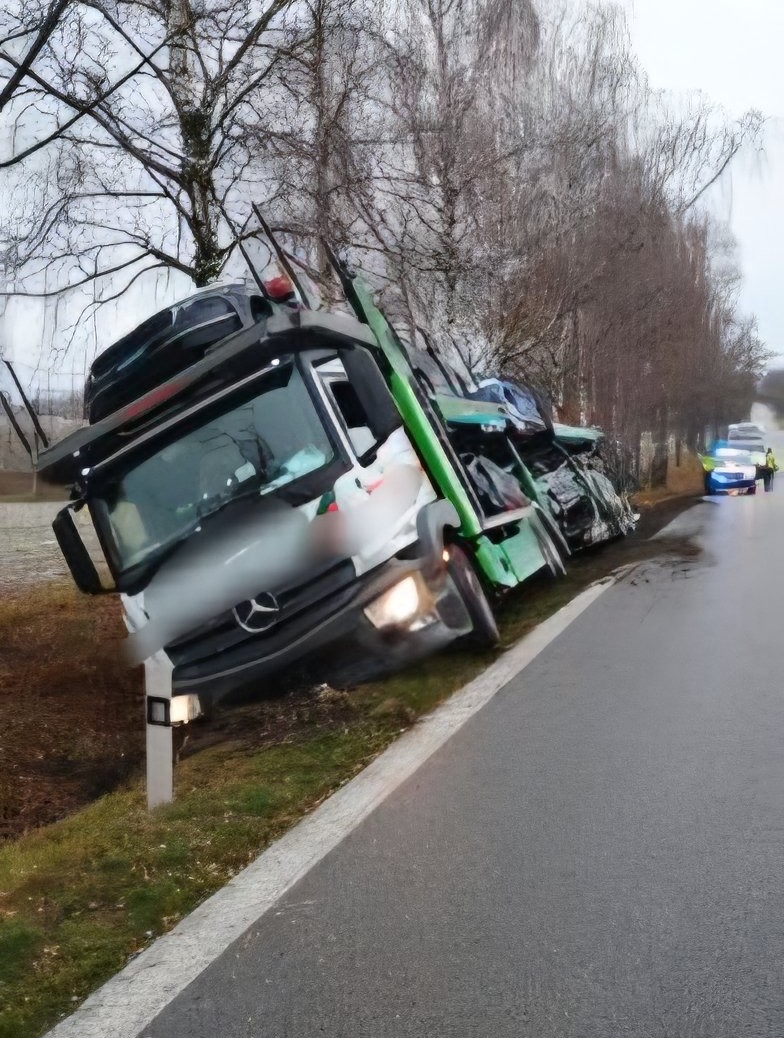 Hasiči zasahovali dnes dopoledne na silnici I/20, v katastru obce Libějovice, u nehody nákladního auta převážejícího osobní vozy.