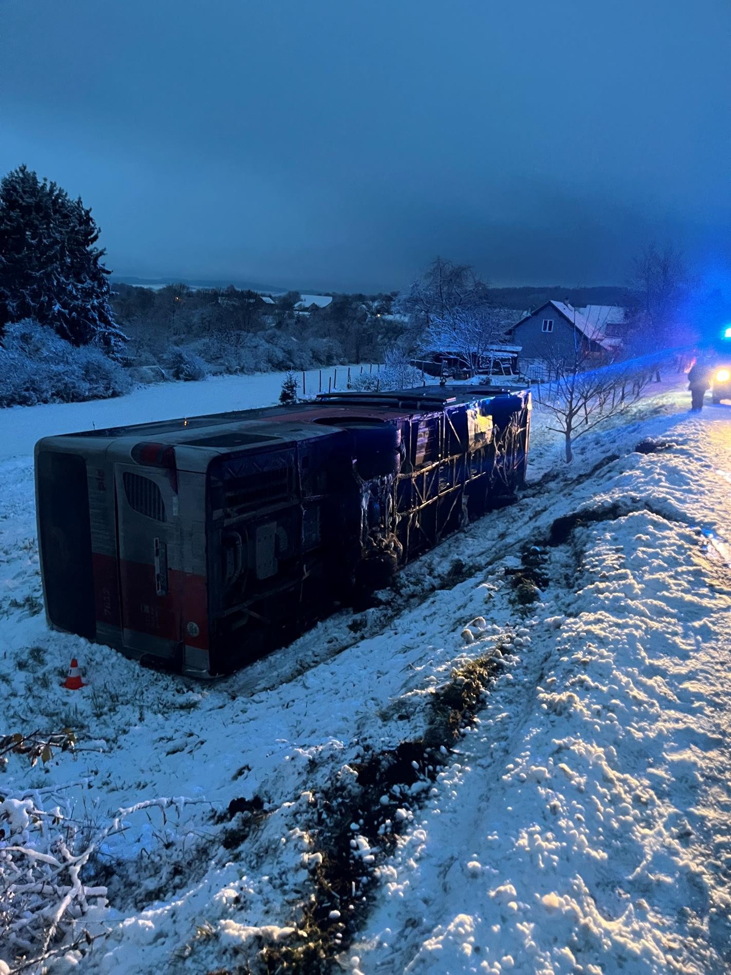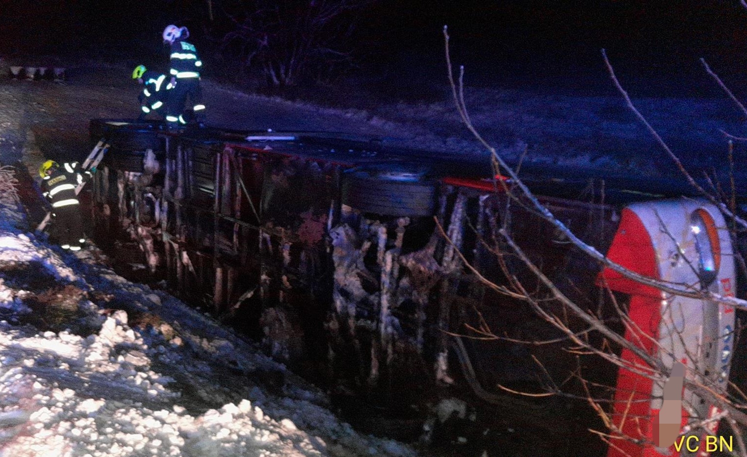 Profesionální hasiči z Benešova spolu s dobrovolnými obcí Divišov, Choratice, Ostředek a Sázava vyjeli k dopravní nehodě autobusu na boku v poli. Hasiči museli pomoci vystoupit třinácti osobám.