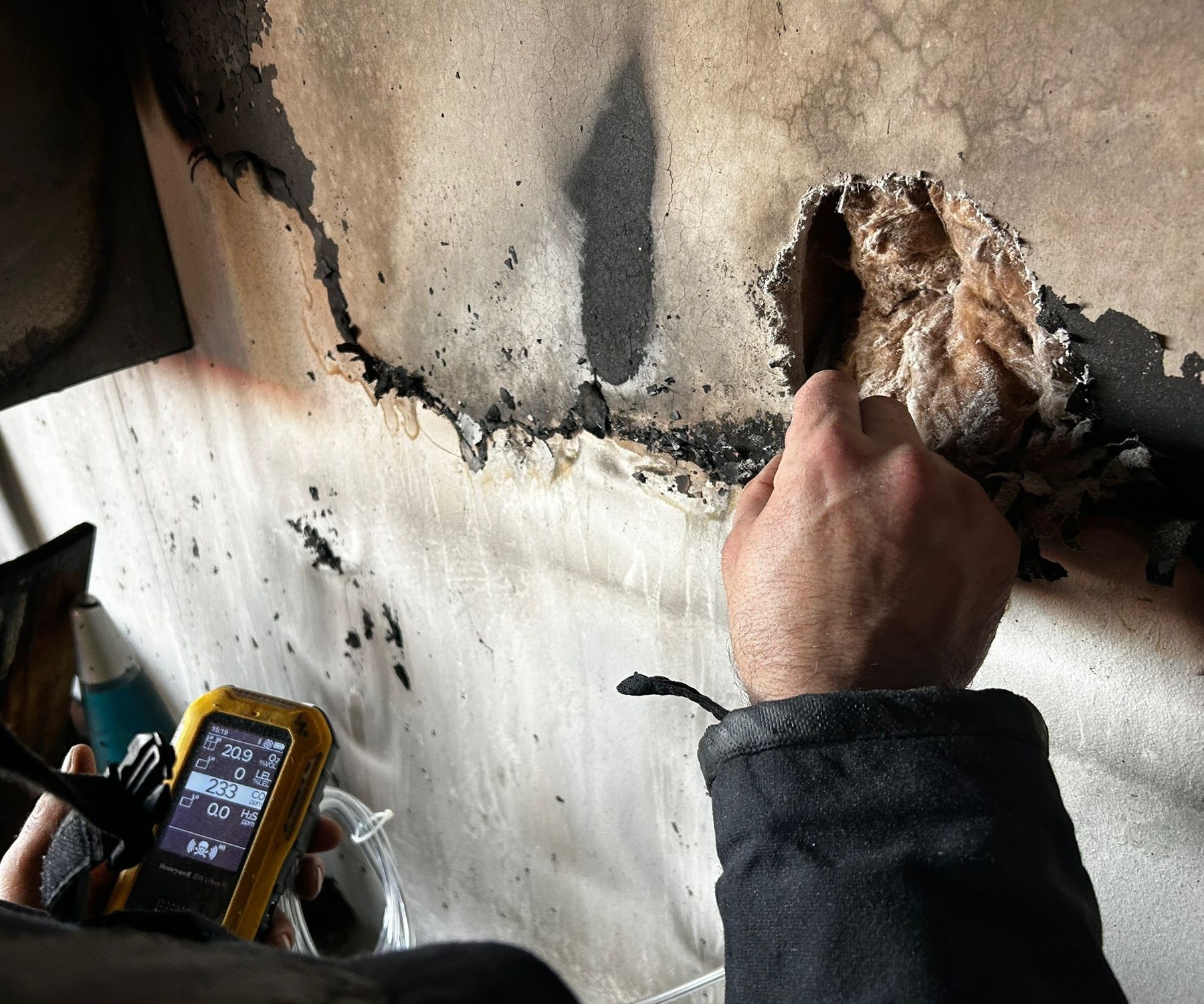 Požárem byla poškozen i sendvičový panel SDK příčky, kterou jednotka částečně rozkryla.