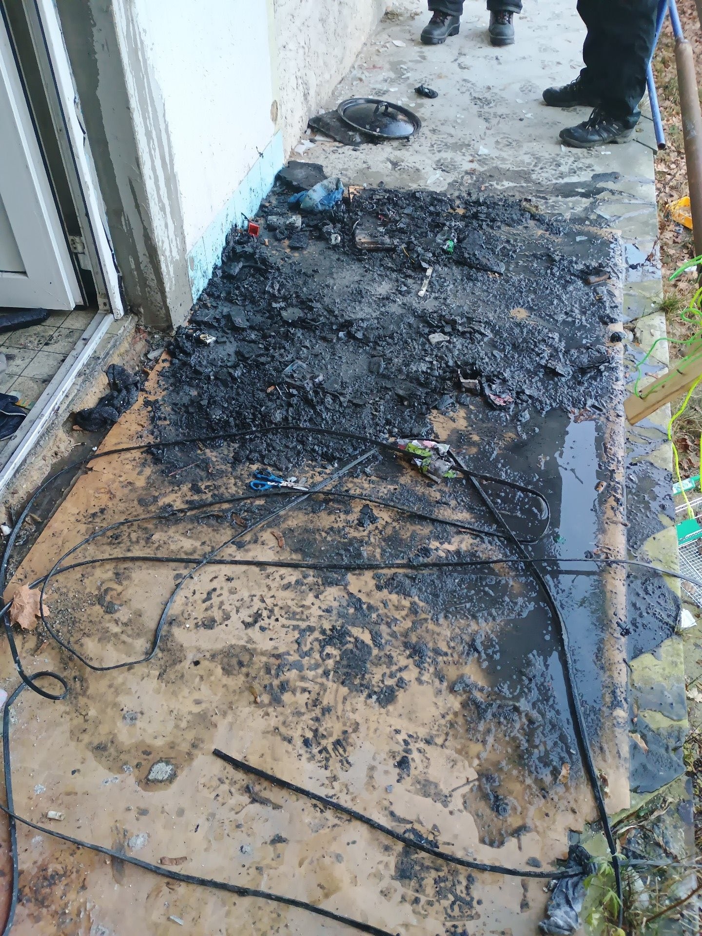 Jednotka musela přestřihnout visací zámek, aby se dostala k požáru hromádky hadrů. Požár beze škody, bez zranění.