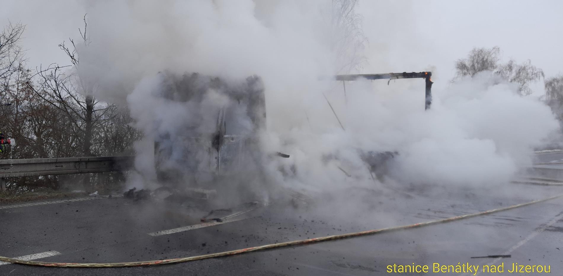 K požáru nákladního automobilu v plném rozsahu vyjeli profesionální hasiči z Mladé Boleslavi, Benátek nad Jizerou a Milovic.