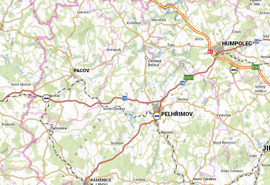 OBRATAŇ - PELHŘIMOV - HUMPOLECKO.