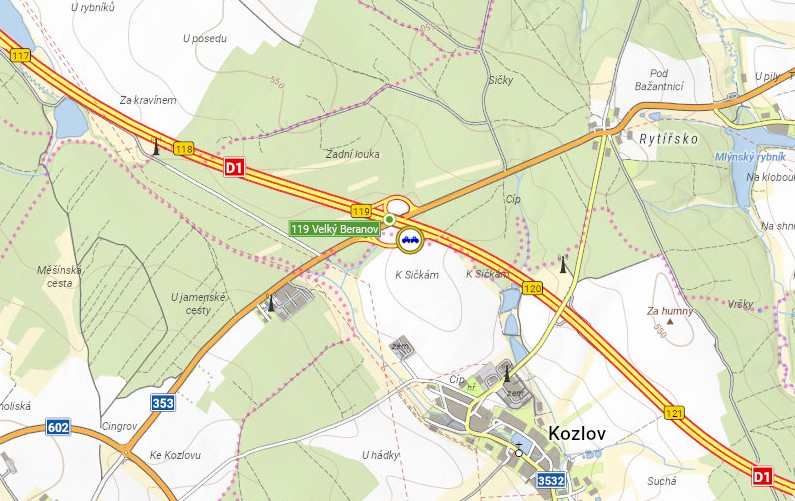 Ve středu 10. září jela před druhou hodinou odpoledne po dálnici v úseku u Kozlova ve směru na Brno řidička vozidla Lexus. Sjížděla ve směru na Velký Beranov, vlivem rychlosti ale nebyla schopna projet zatáčkou, přejela přes travnatý ostrůvek a následně automobilem narazila do boční části zaparkované nákladní soupravy složené z tahače Scania a návěsu.
