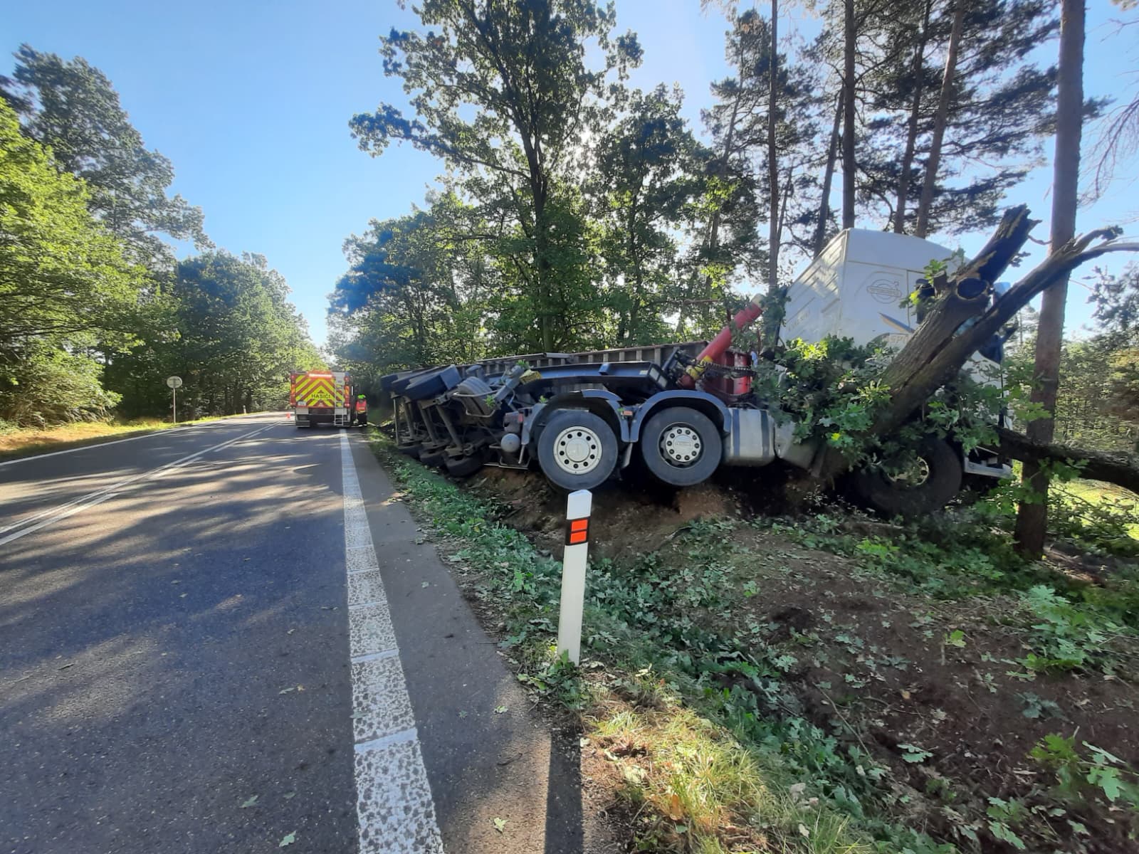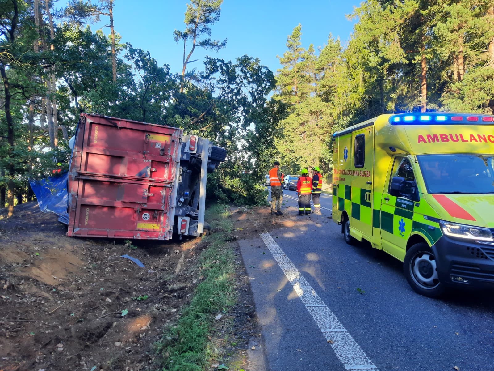 Profesionální jednotka hasičů ze stanice Milevsko, spolupracovala s JSDHO Mirovice u Starého Sedla u nehody nákladního auta.