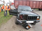 Nehoda na železniční vlečce. Řidička terénního vozu zřejmě nesprávně vyhodnotila situaci a vjela na přejezd. V úterý ráno zažili českobudějovičtí.