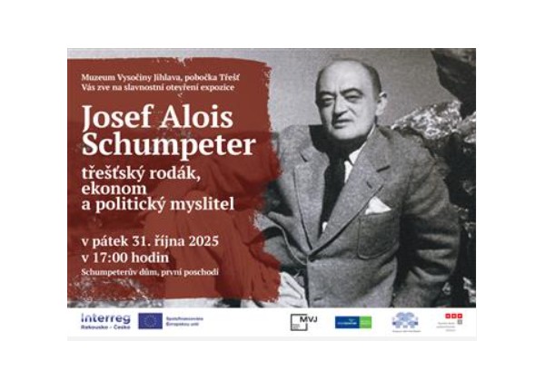 Otevření nové expozice J. A. Schumpetera v Třešti. MVJ, pobočka Třešť, Rooseweltova 462, Třešť. 31. října 2025, začátek v 17:00.