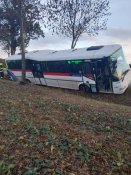 HASIČI ŽĎÁR NAD SÁZAVOU: Jámy - Pod autobusem se utrhla krajnice a převrátil se na strom. Při nehodě došlo k jednomu.